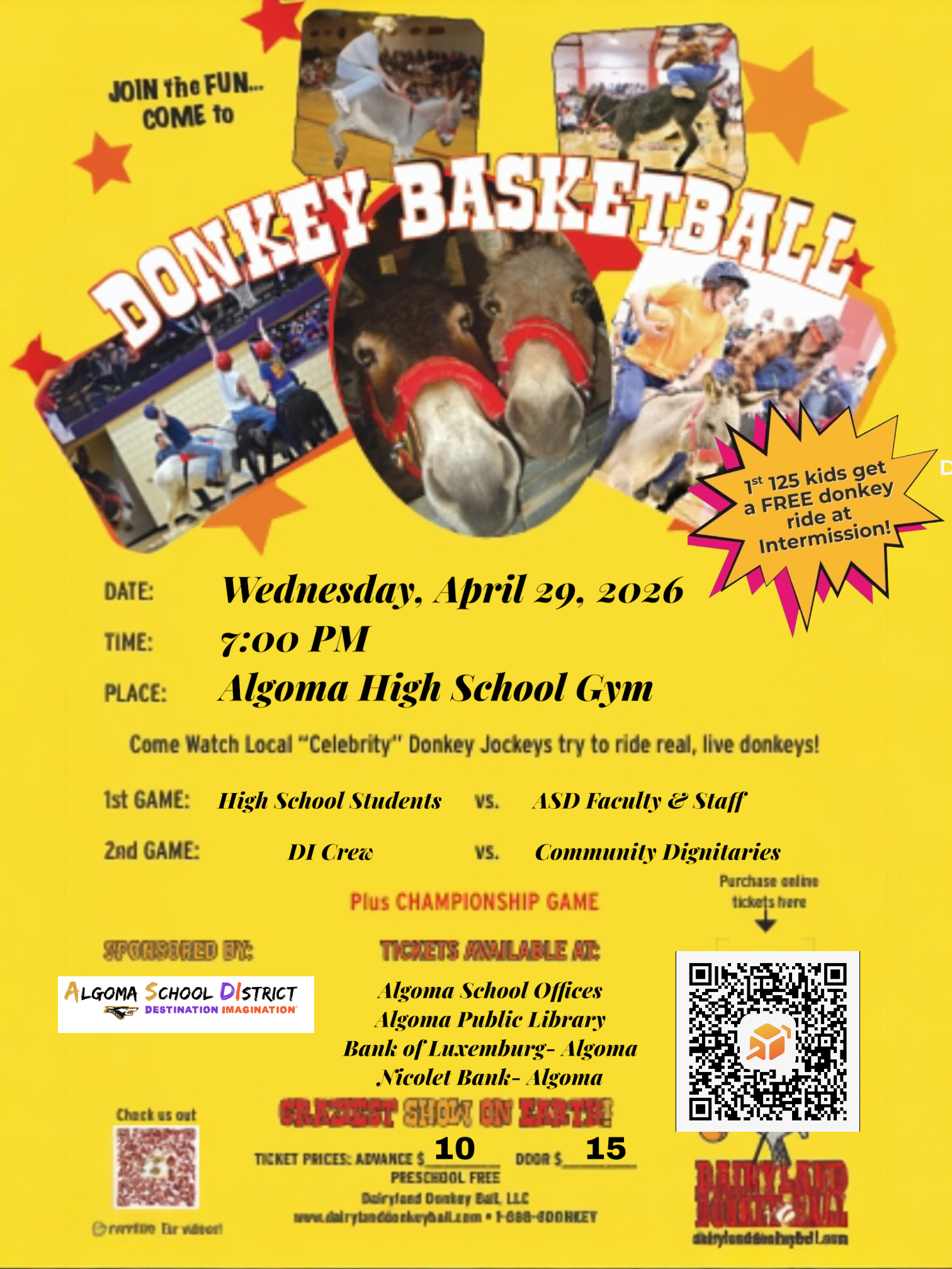 Algoma Destination Imagination is presenting Donkey Basketball.